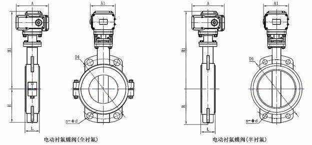电动衬氟蝶阀 主要外形尺寸